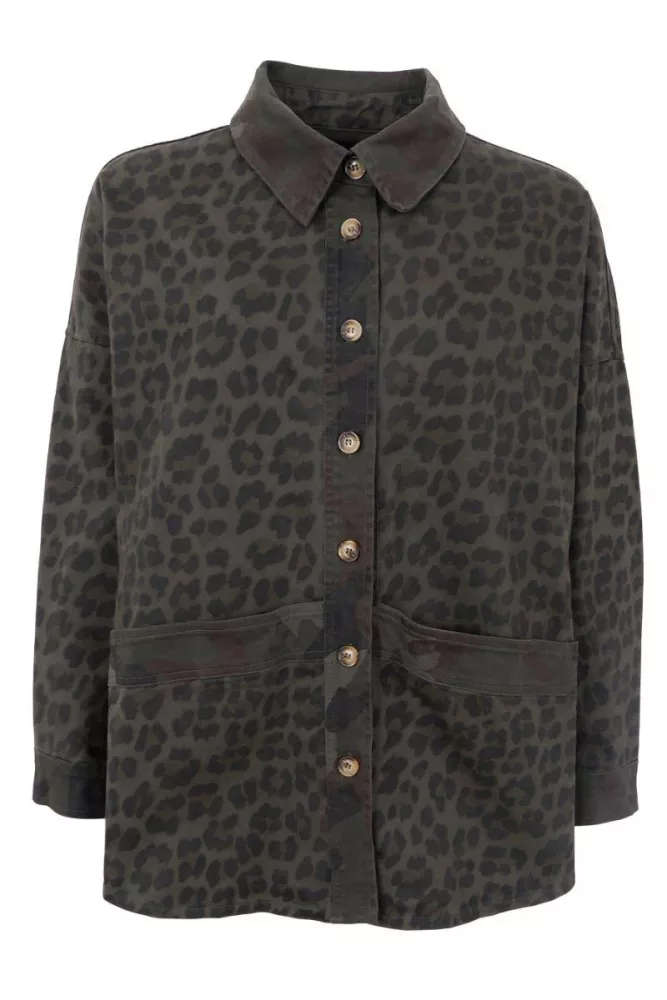 Morgan är en camo-mönstrad jacka i slitstark canvas – en riktigt cool statement-piece som ger attityd till alla outfits. Jackan har klassisk krage, knäppning med knappar framtill samt praktiska fickor. Perfekt som lager över en enkel topp eller klänning, och lika snygg att bära både till vardags och när du vill höja stilen.