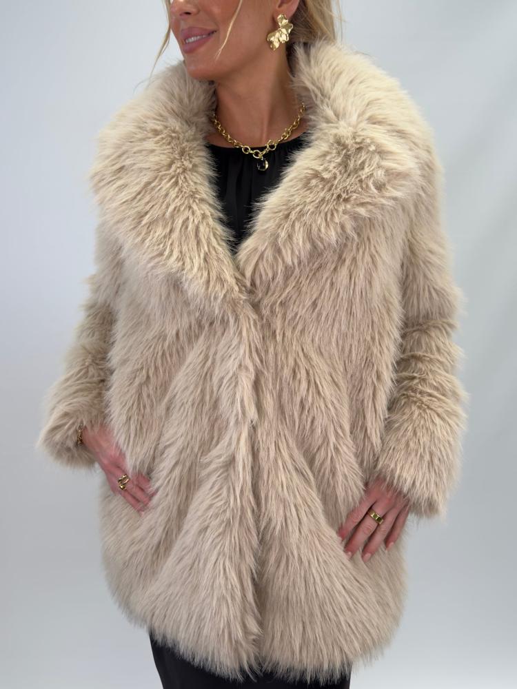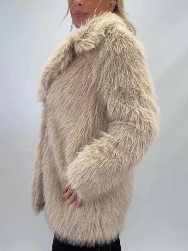 En lyxig jacka i fuskpäls med mjuk och fyllig känsla som håller dig varm samtidigt som den adderar glamour till din outfit.