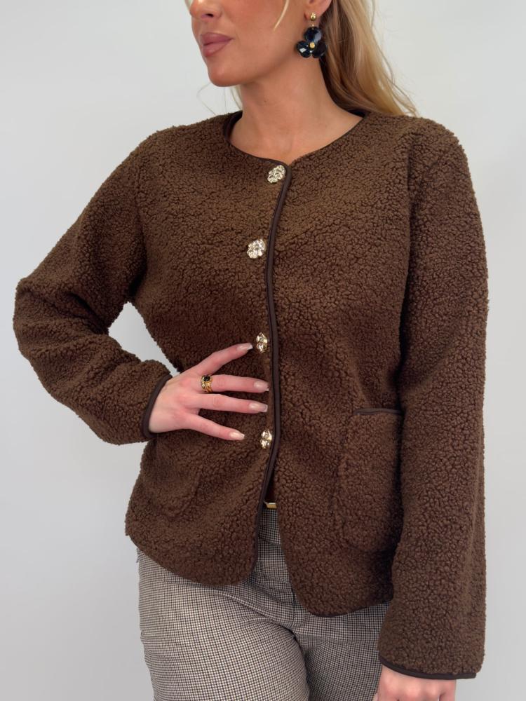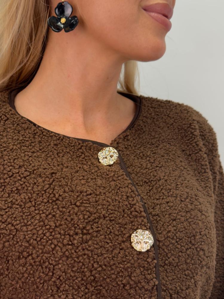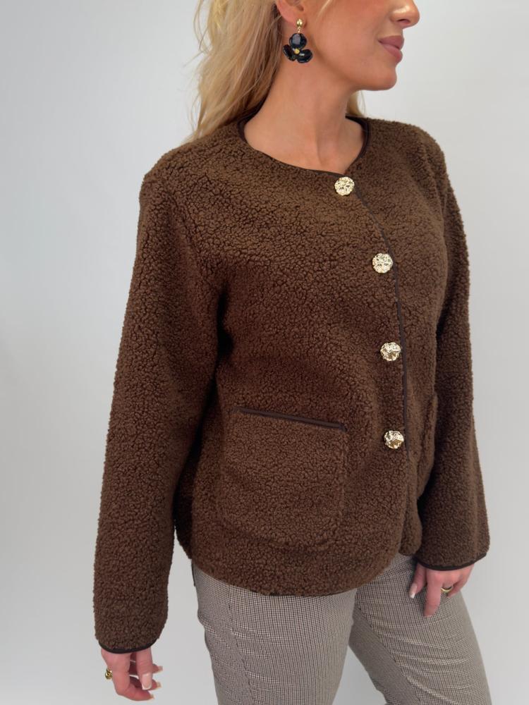 Jacka med guldknappar, Brun Teddy, Zia - Gemini