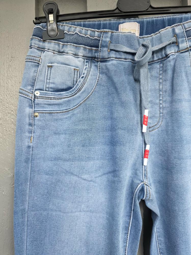 Skönaste jeansen i en snygg ljust denim. Go stretch i 5-ficksmodell - med resår och knytband i midjan.