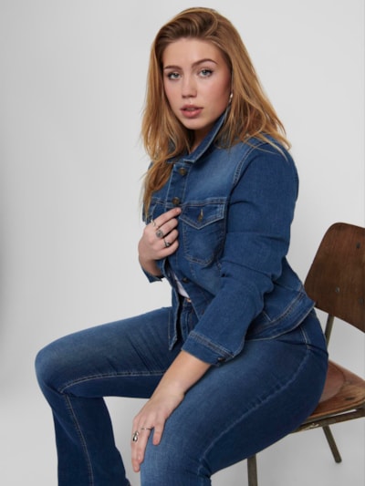 - Curvy-jeansjacka från ONLY CARMAKOMA - Knappknäppning framtill - Två bröstfickor med klaffar - Knappar på ärmsluten - Stretchigt material -