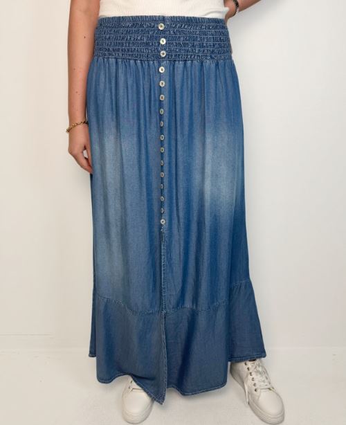 Mjuk och skön lång jeanskjol med bred smock i midjan - Onesize