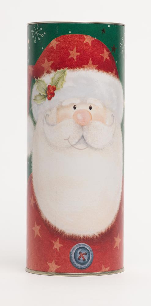 Njut av små spröda kakor från Farmhouse Biscuits, i en julfin ask prydd med en glad tomte med yvigt skägg.