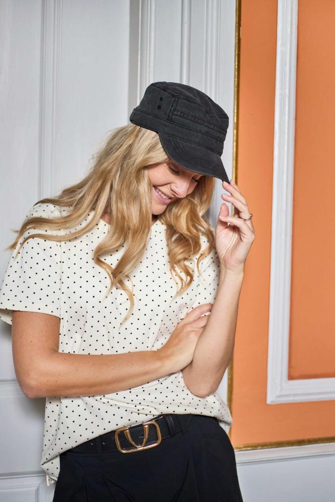 Snygg armykeps i en fin mörkgrå nyans. Reglerbar bak.