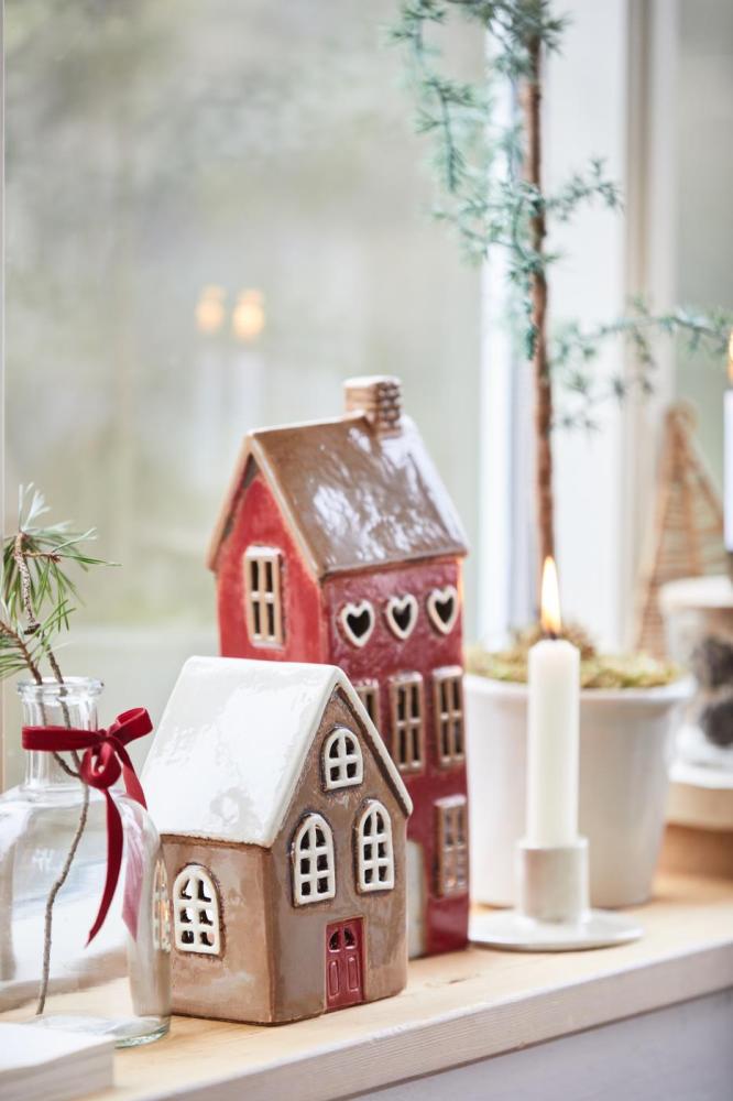 Placera keramikhuset på en hylla, fönsterbräda eller tillsammans med andra dekorativa hus för att skapa en liten julby. Kombinera med gröna grenar eller ljusslingor för en ännu mer inbjudande och festlig atmosfär.
