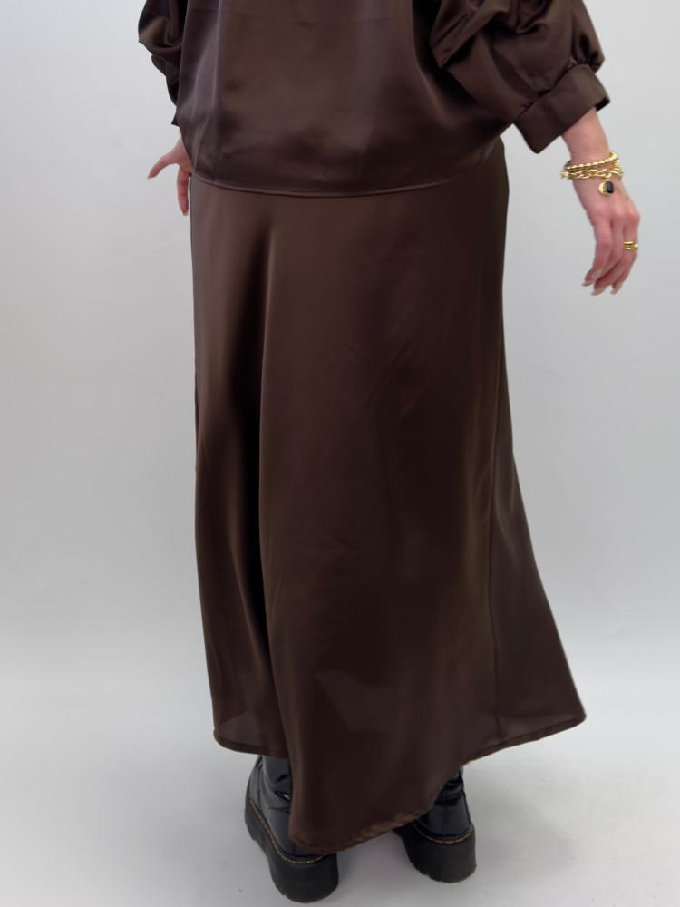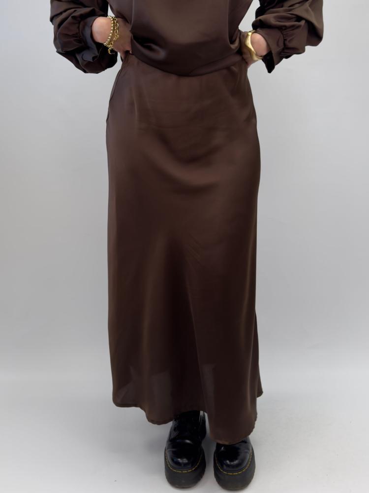 Brun lång kjol med följsam passform, som gör den enkel att styla både till vardags och fest - och skapar en stilfull look med modern touch.