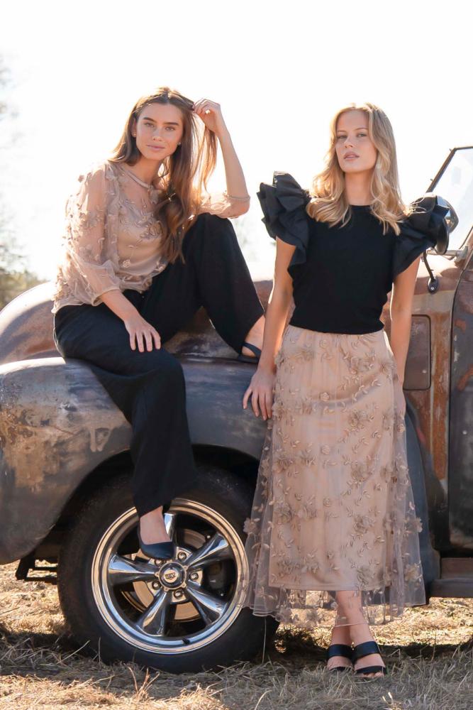 Florence är en underbart vacker och feminin festkjol i skir meshkvalité, dekorerad med elegant brodyr och påsydda blommor som skapar en lyxig 3D-effekt. Den a-linjeformade siluetten ger ett mjukt och smickrande fall, medan den breda linningen i glansig satin tillför en exklusiv känsla. En romantisk kjol som gör sig lika fint till fest, bröllop och andra speciella tillfällen där du vill bära något med extra wow-känsla.