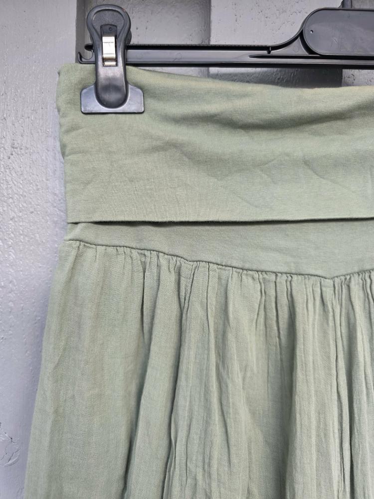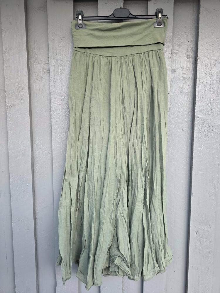 Härlig army grön bomullskjol med bred resårmudd i midjan, som kan dras upp över bysten - Onesize