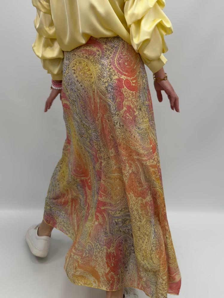En paisleymönstrad lång kjol med subtil glans och följsam passform, som gör den enkel att styla både till vardags och fest - och skapar en stilfull look med modern touch. Färg: Gul, orange, rosa m fl