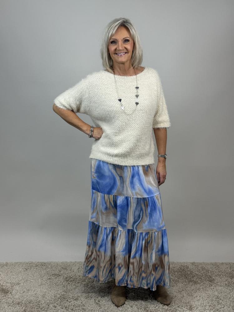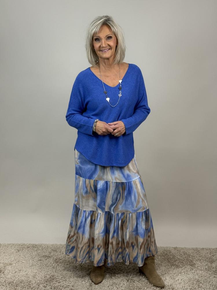 Lång viskosekjol, ljust blå med härligt böljande mönster - Onesize