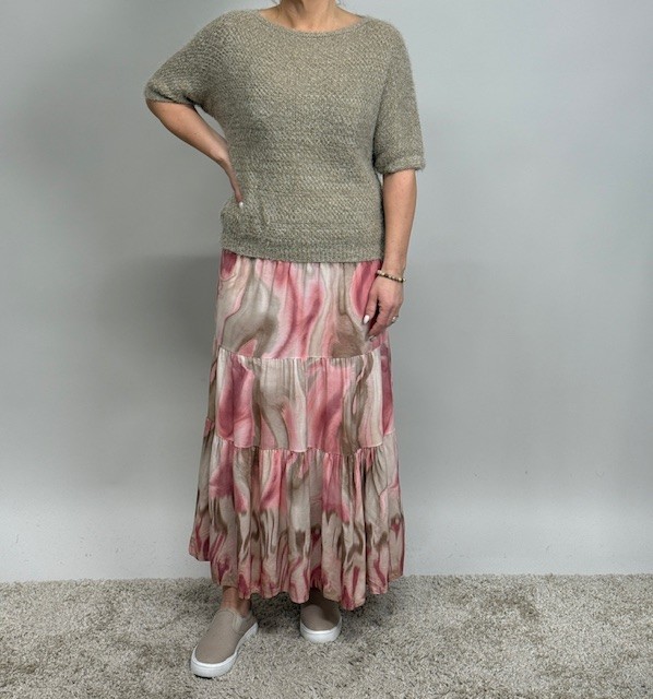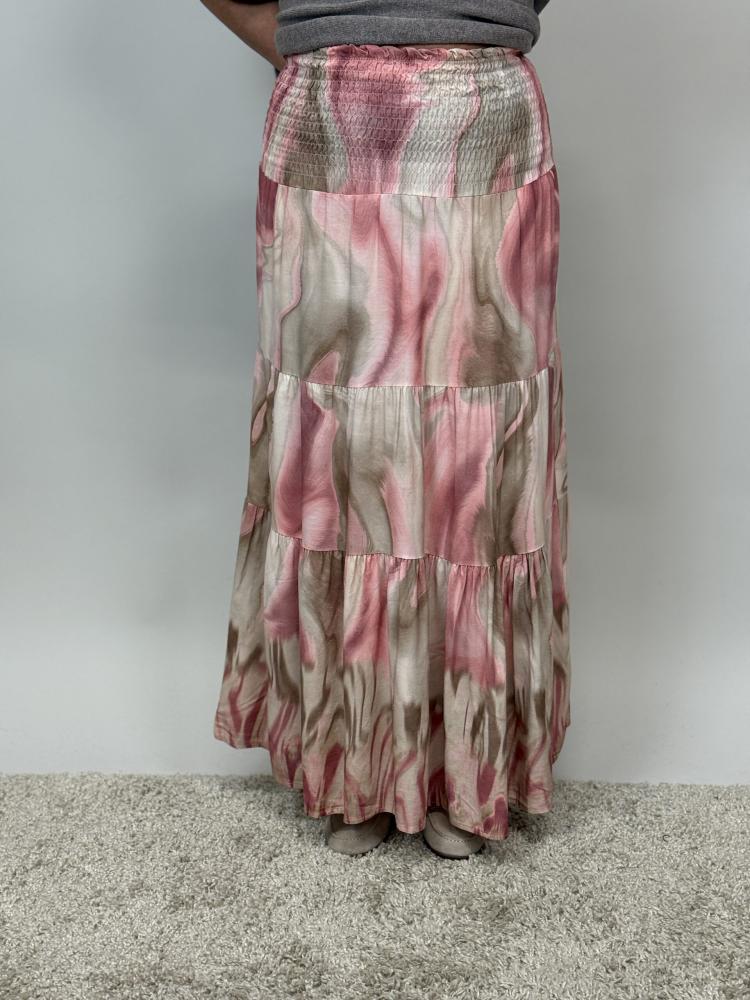 Lång viskosekjol, rosa med härligt vågigt mönster - Onesize