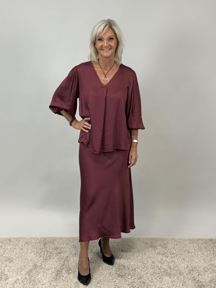 Kjol, Vinröd glansig, Kate - Mix by Heart