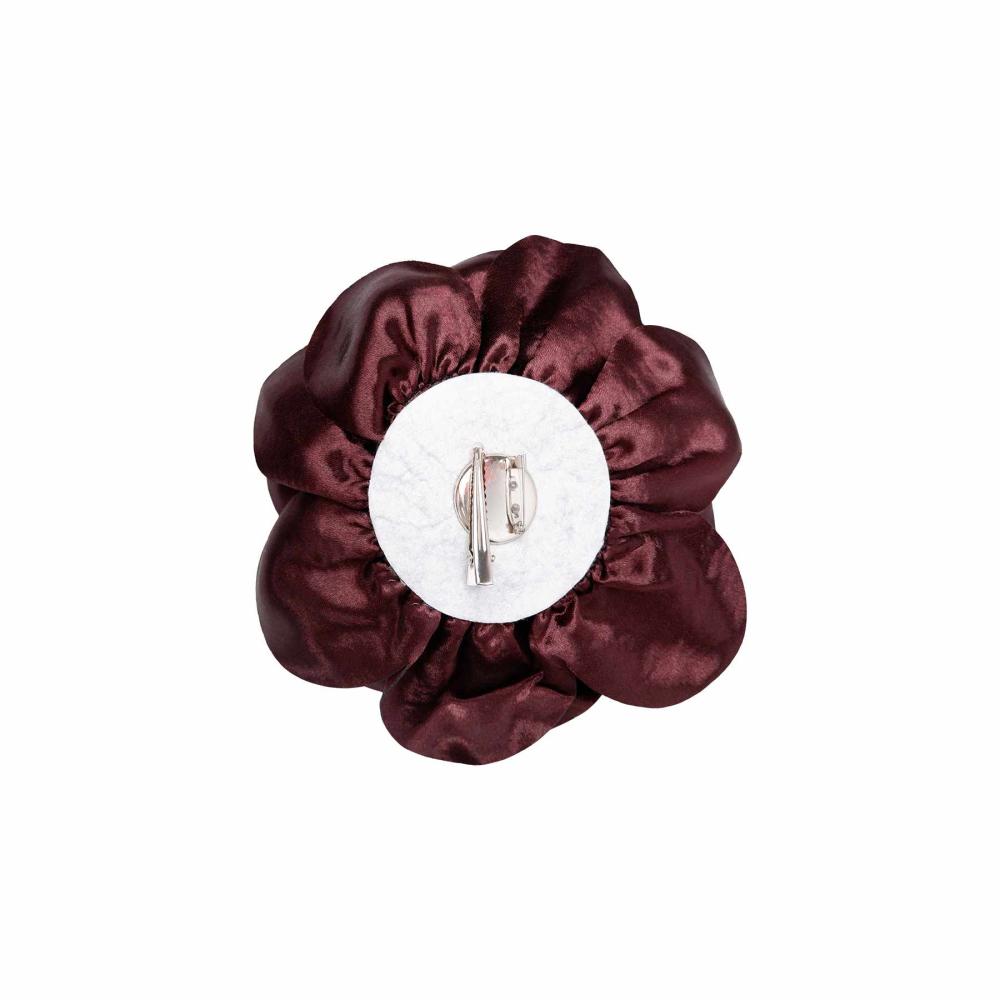 Brun blomma i glansigt material, med fäste för både klämma till ex håret - samt nål om man vill använda den som brosch. Piffar snabbt och enkelt upp den enklaste topp.