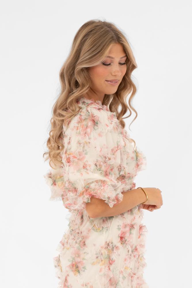 Blommönstrad och romantisk med tyllvolanger - Klänningen för fest och speciella tillfällen