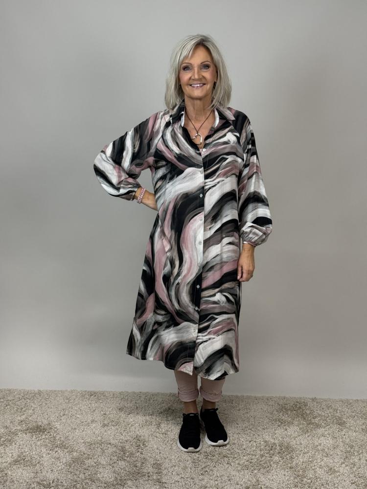 Klänning, Böljande mönster i rosa / vitt / svart, Mallan - Mix by Heart KOMMER SNART!