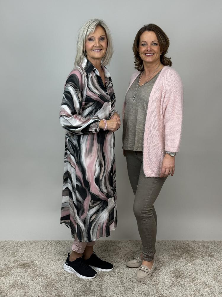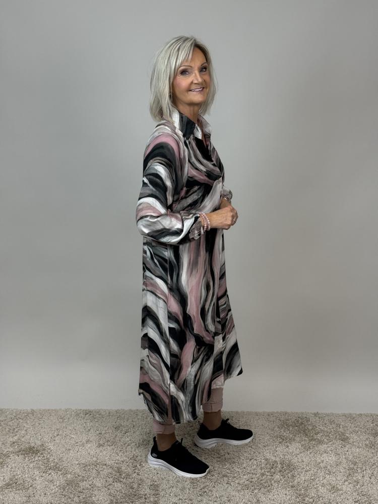 Mallan är ett mångsidigt och stilfullt plagg från Mix by Heart som kan bäras som klänning, kaftan eller kimono beroende på tillfälle och styling. Den helknäppta modellen med krage ger ett elegant uttryck, medan den lösa passformen skapar ett vackert, böljande fall som känns både bekvämt och genomtänkt. Slitsen i sidan ger extra rörelse och gör plagget lätt att bära, oavsett om du vill ha en avslappnad vardagslook eller klä upp dig lite mer.
