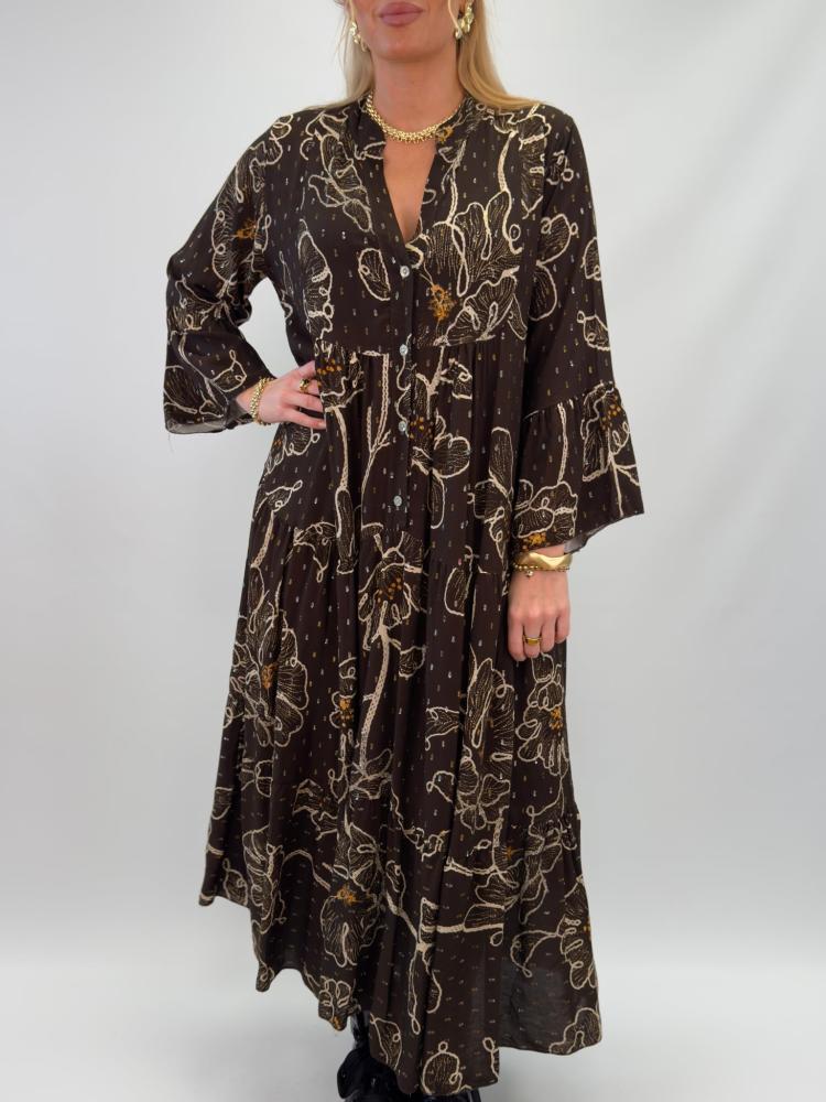 Lång klänning i viskose - som ger en bohemisk känsla. Den lediga passformen och knappar framtill gör den bekväm och lätt att styla både till vardag och fest.