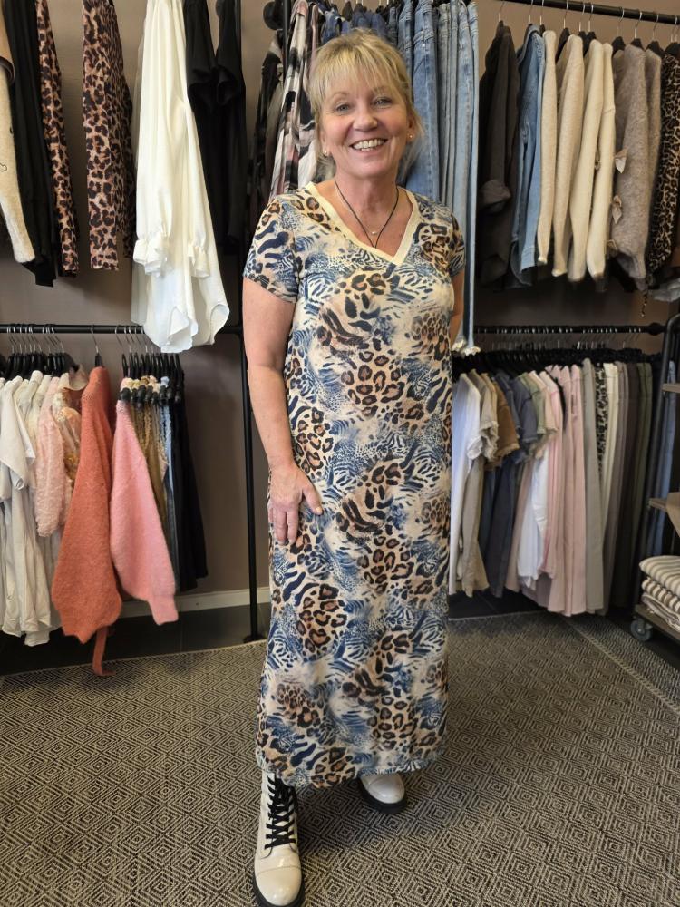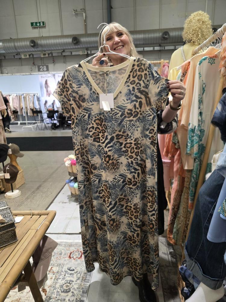 Mjuk och skön leomönstrad klänning i sköna toner - Onesize