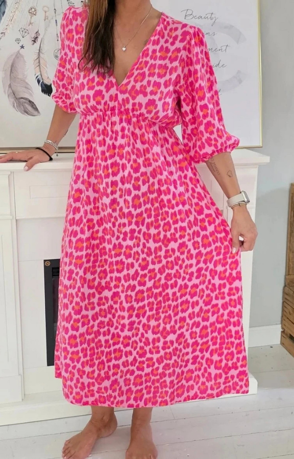 Maxiklänning med smickrande passform och trendigt leopardmönster