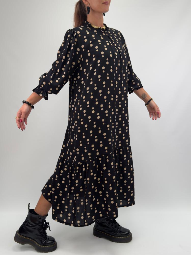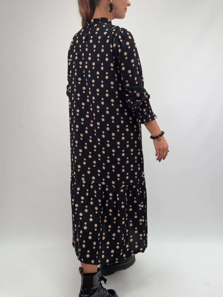 Klänning Svart med beige prickar, Hana - Gemini