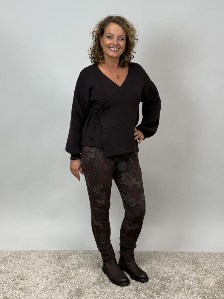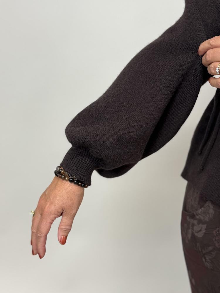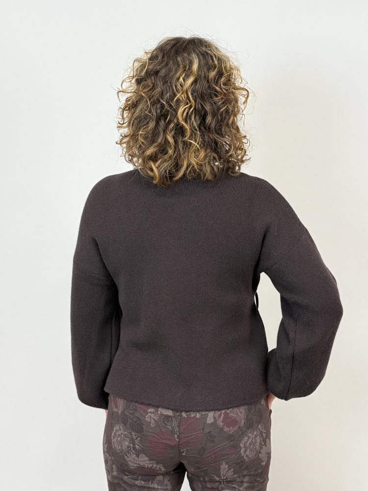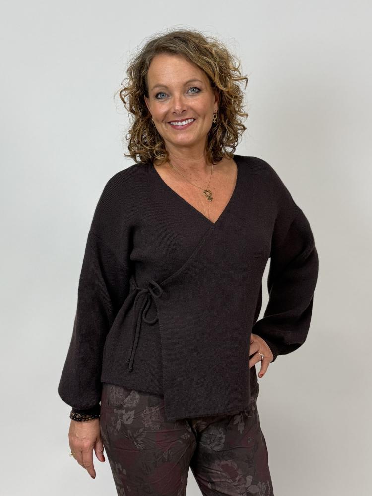 Stickad brun omlottkofta med lång ärm och mudd nertill som gör ärmen lite "puffig". Otroligt mjuk och skön.