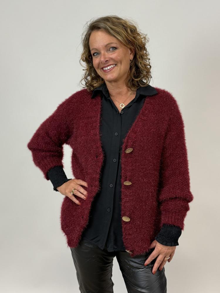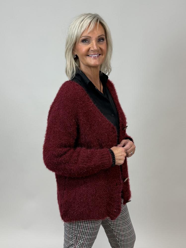 Kofta, Vinröd Stickad, Felice - Mix by Heart