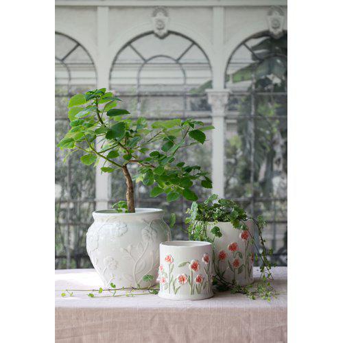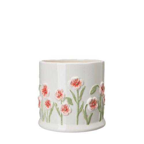 Vacker glaserad kruka med motiv av röda vallmo, välj mellan 2 storlekar