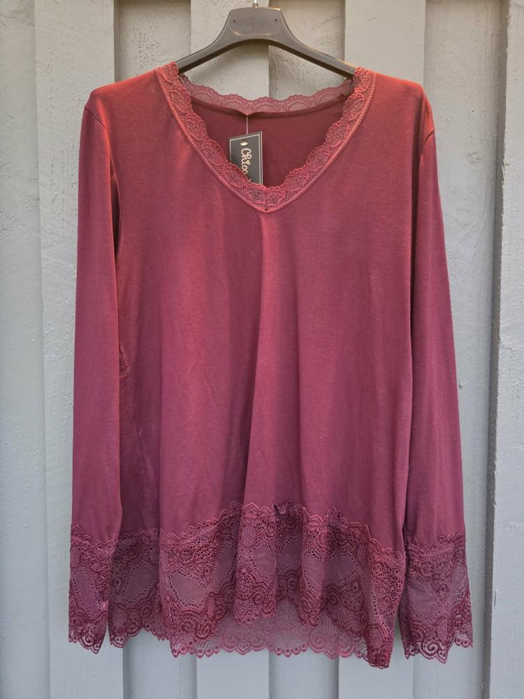 Långärmad topp med spets, Vinröd Tina - Caramelle Fashion