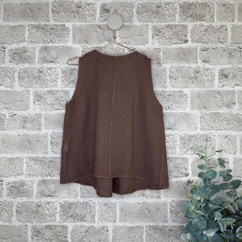 linne dam, linne i 100% linne, brunt linne, ärmlöst linne, Cabana Living