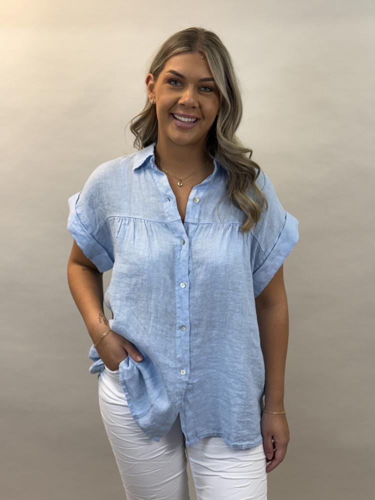 Linneblus med kort ärm, Ljusblå Zoe - Mix by Heart BERÄKNAD LEV: APRIL