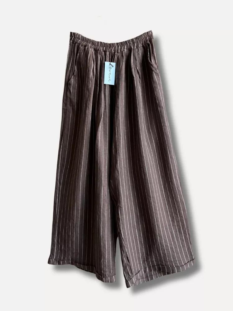 Linnebyxa, Randig Mörkbrun / Vit Bea - Reunion Home