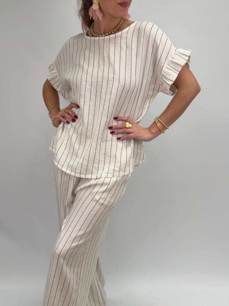 Linnebyxa Randig, Vit / Svart Liana - Gemini BERÄKNAD LEV: MARS