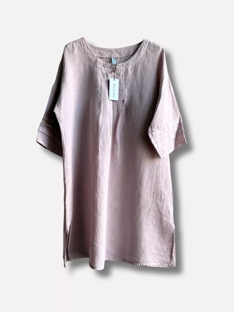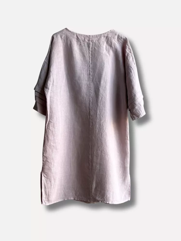 Linneklänning med sydda veck, Antik Rosa, Vera - Reunion