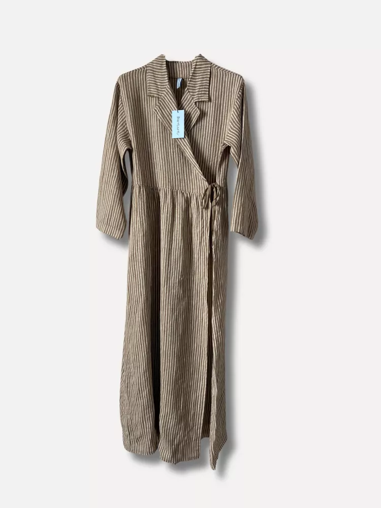 Linneklänning Omlott, Randig Brun / Vit, Marta - Reunion Home