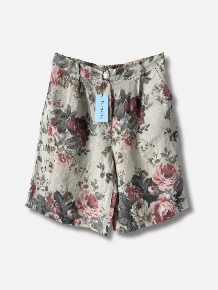 Härliga short i linne med blomsterprint, lätt att dressa både upp och ner, 100% linne - Dubbelstorlek