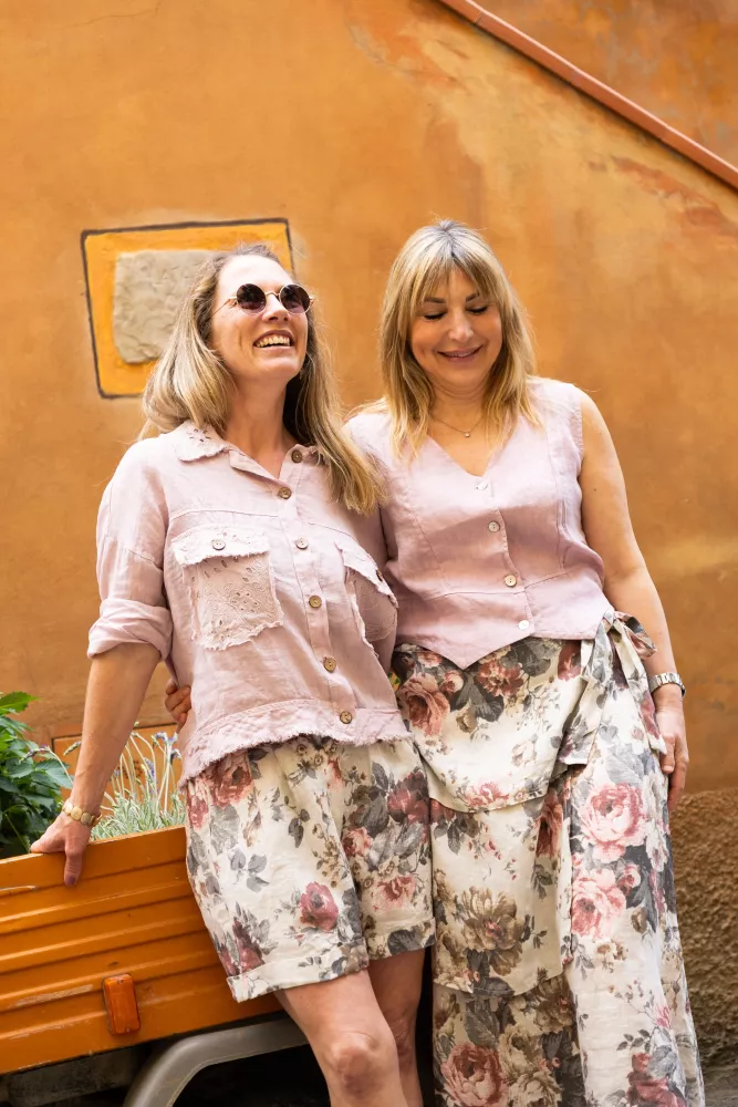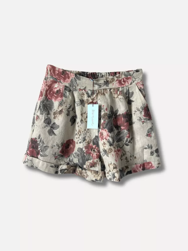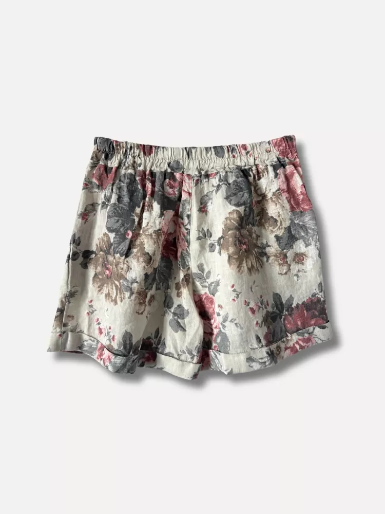 Coola shorts med vacker blommönstrat linne, lätt att dressa både upp och ner, 100% linne - Dubbelstorlek