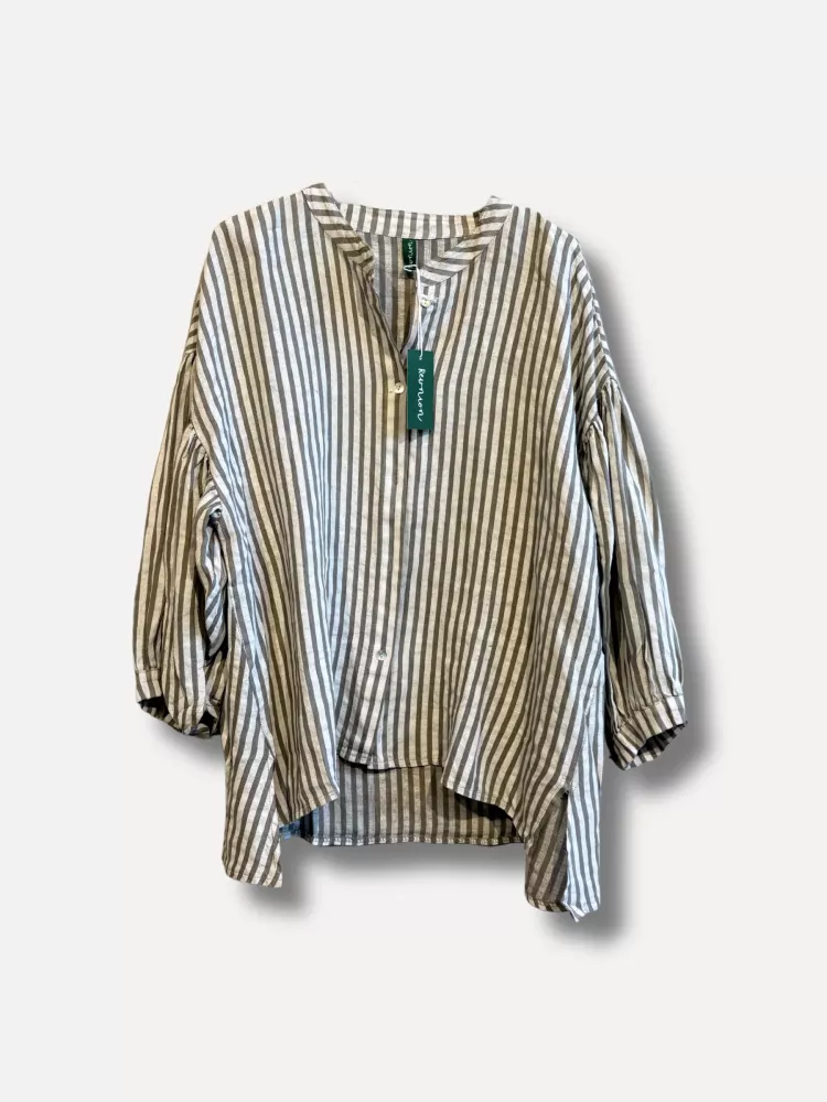 Snygg klassiskt randig linneskjorta / linneblus med lite ballongig ärm - Onesize, passar upp till 42/44