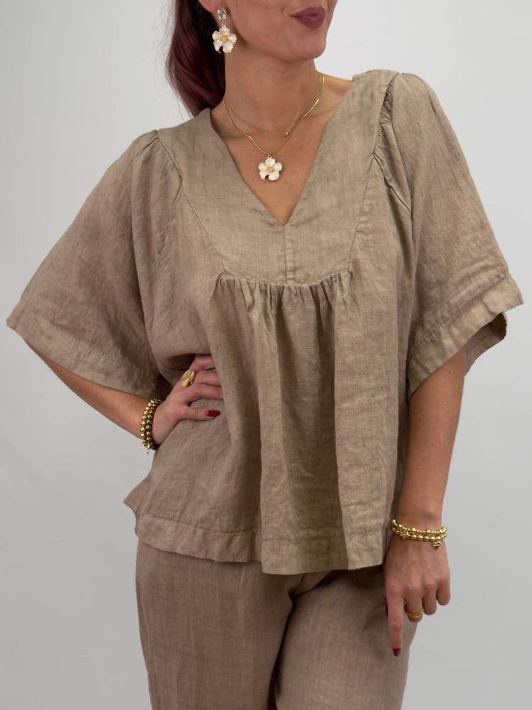 NOVA – luftig linnetopp med v-hals och bohemisk känsla