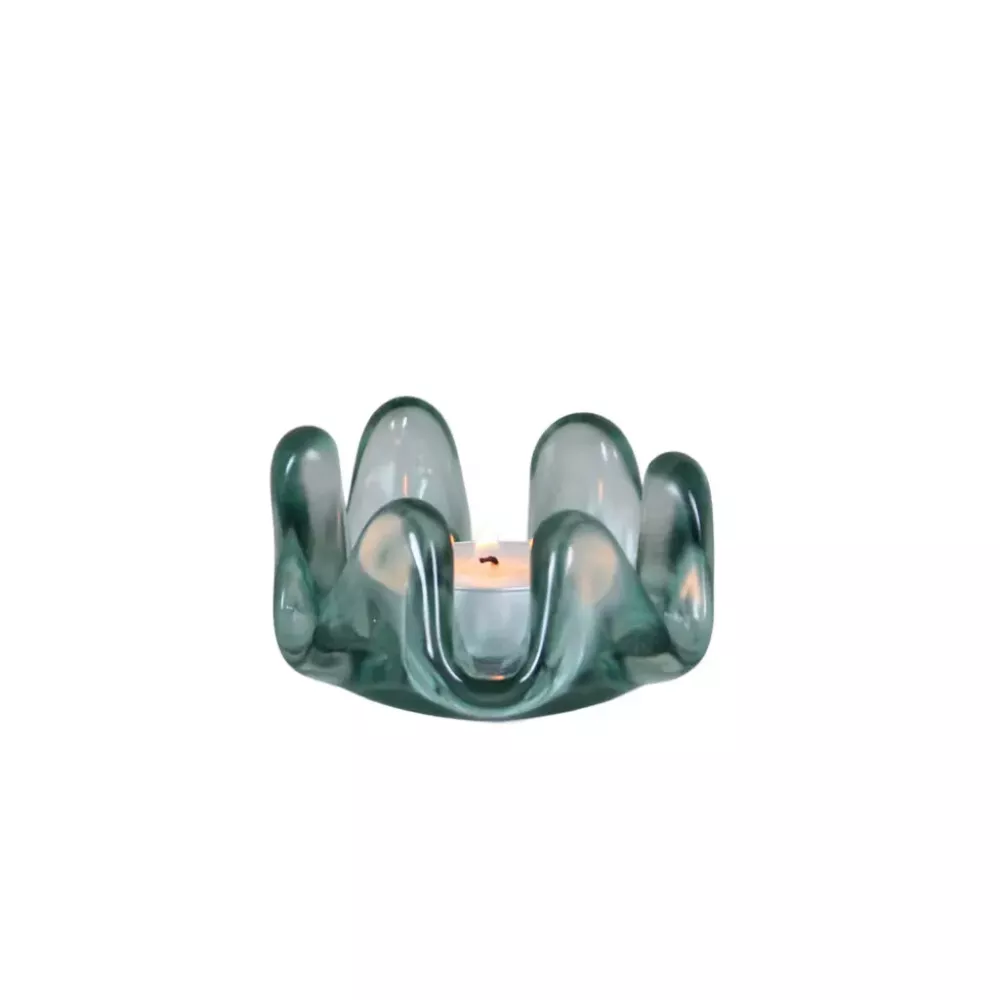 Clara är en stilfull och trendig ljuslykta i grönt glas, perfekt för värmeljus. Dess oregelbundna form skapar en konstnärlig och dekorativ touch som gör den till en vacker inredningsdetalj. Eftersom lyktan är handgjord är varje exemplar unikt, vilket ger en personlig känsla till ditt hem.