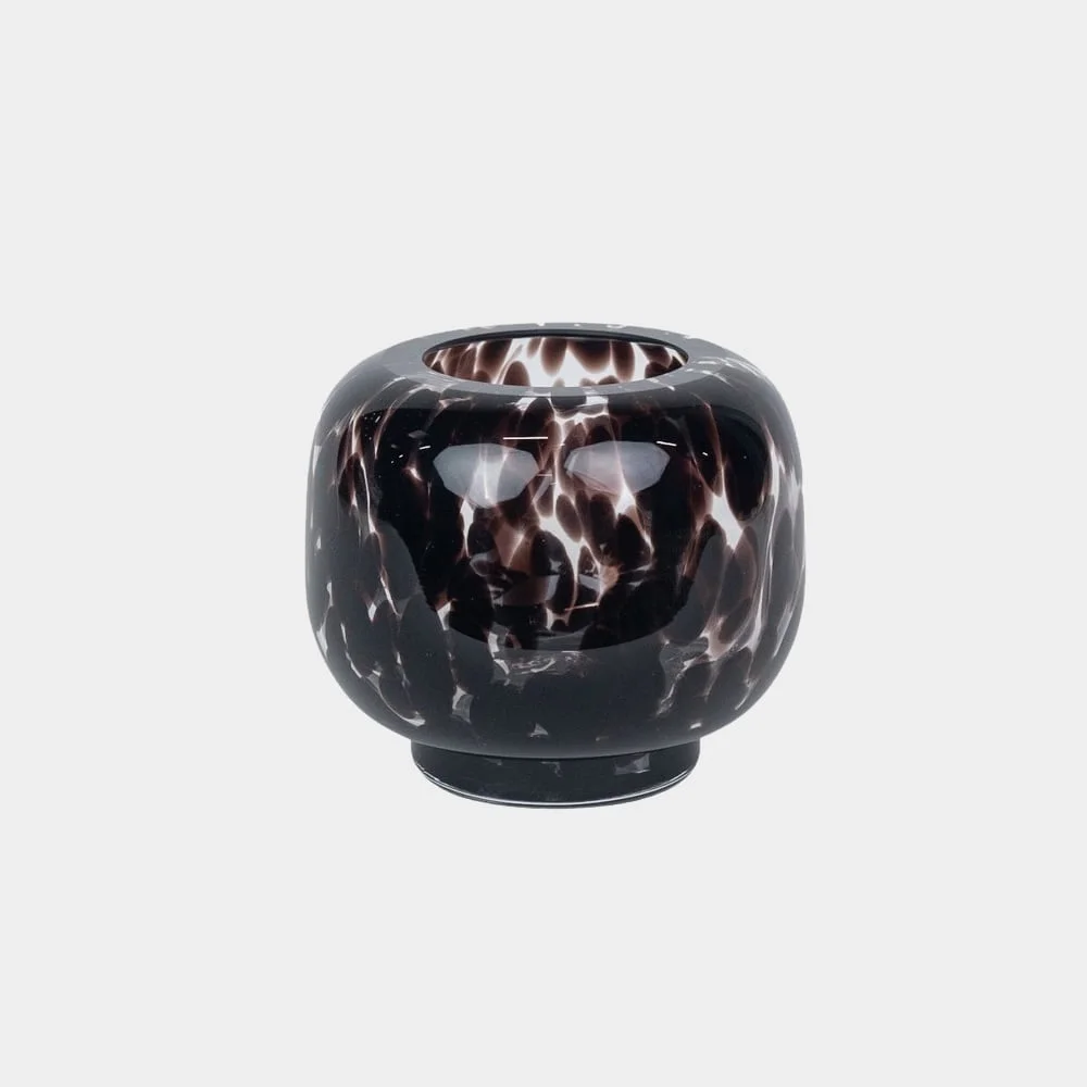 Ljuslykta Leo, Svart fläckigt glas (dia: 12,5 cm) - Olsson & Jensen