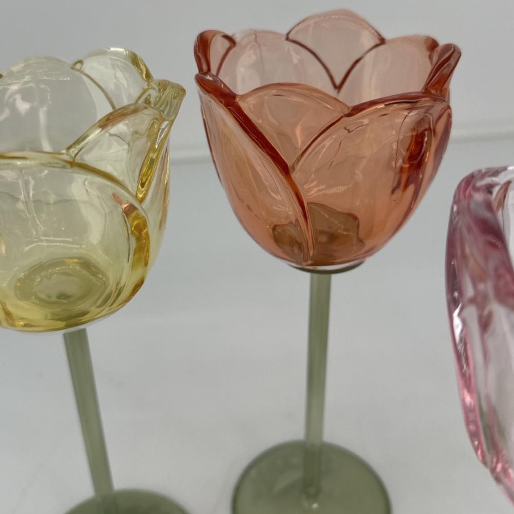 Ljuslykta i form av en blomma på fot, som ger ett vackert sken då den lyser. Avsedd för värmeljus.Ljusstake på fot, Dekorativt att sätta flera tillsammans - Olika höjder och olika färger.