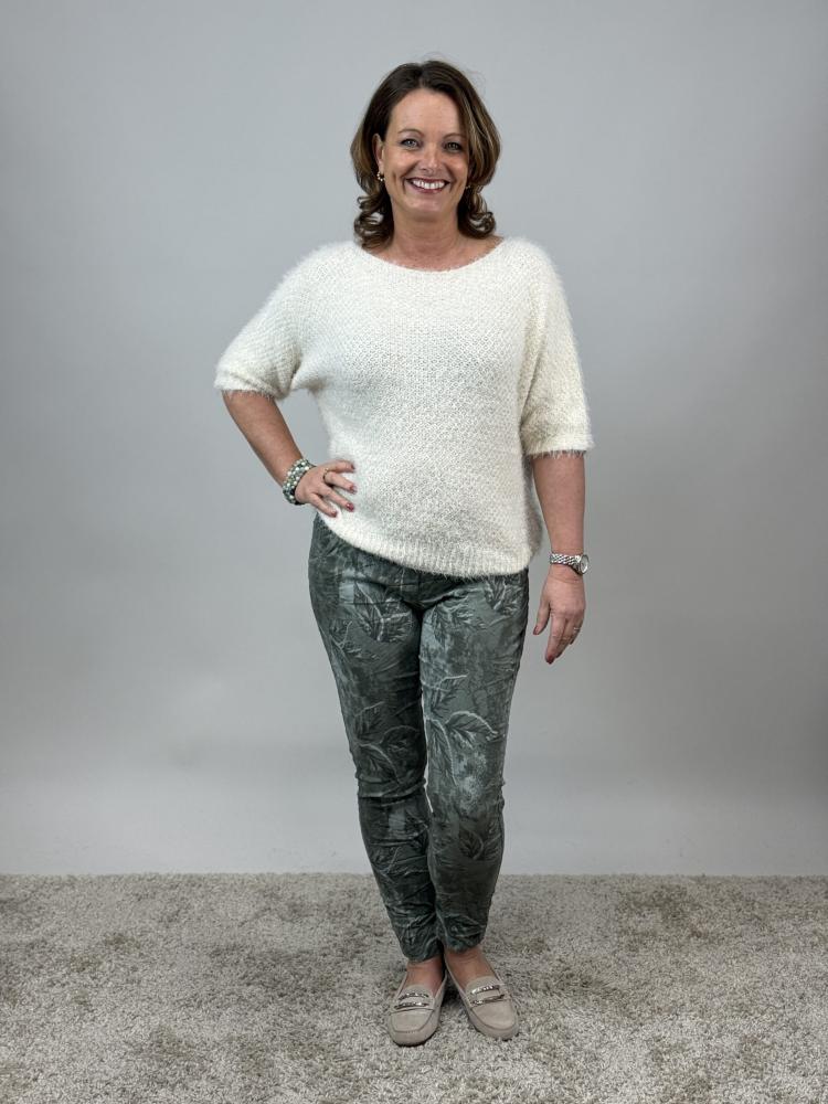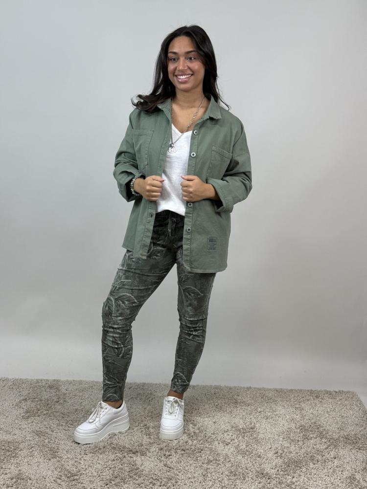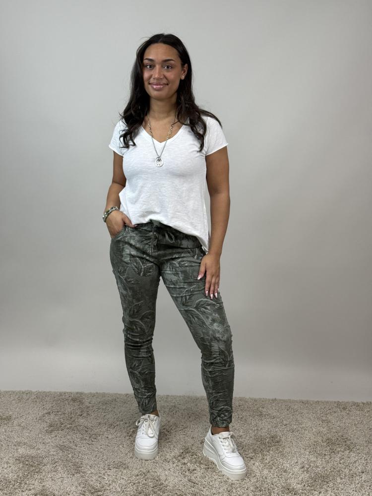 Magiskt stretchig byxa, Armygrön Bladmönstrad, Signe - Mix by Heart
