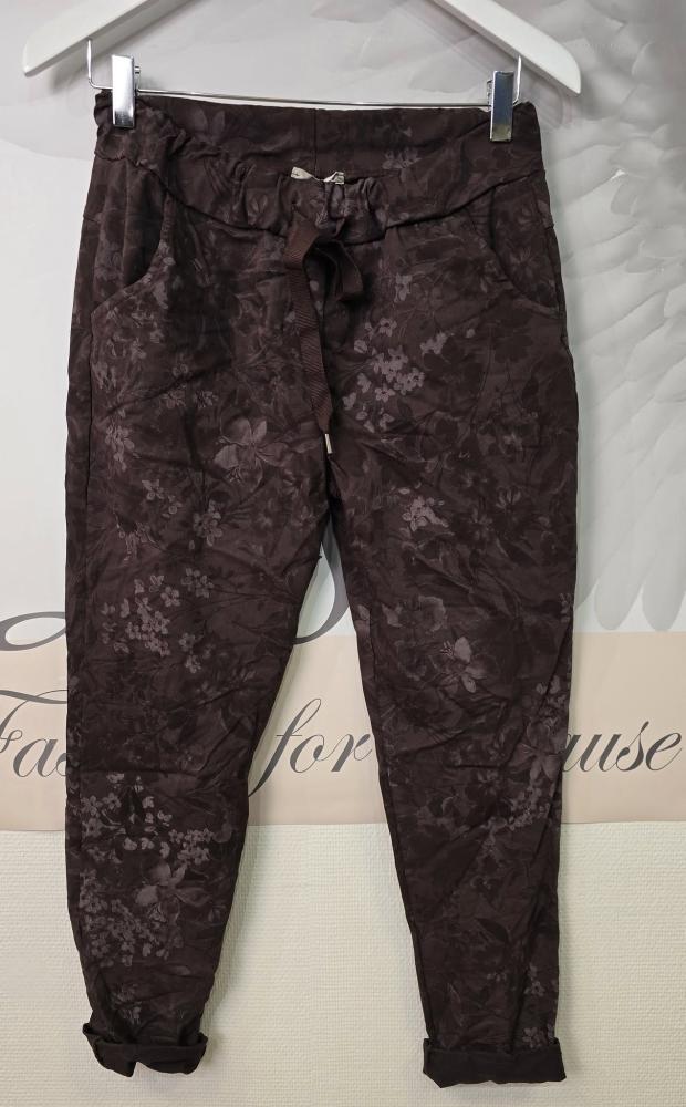 Magiskt stretchig byxa, Flower Coffee (Madde) - Soulful Fashion
