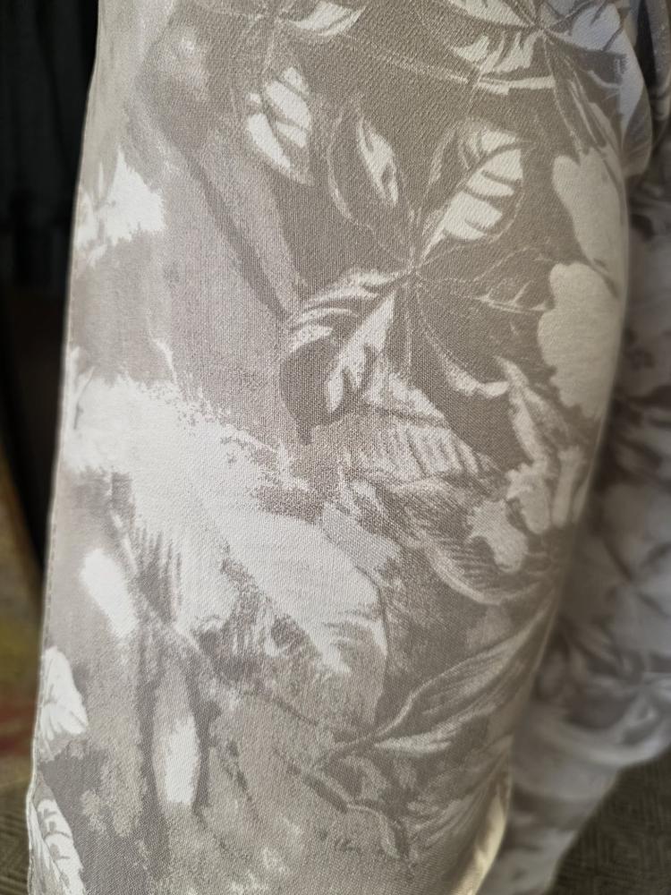 Blad- och blommönstrad byxa i jordnära toner.