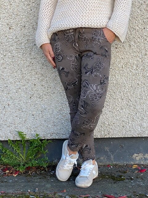 Magiskt stretchig byxa, Paisley Taupe / Brun (Signe) - Mix by Heart