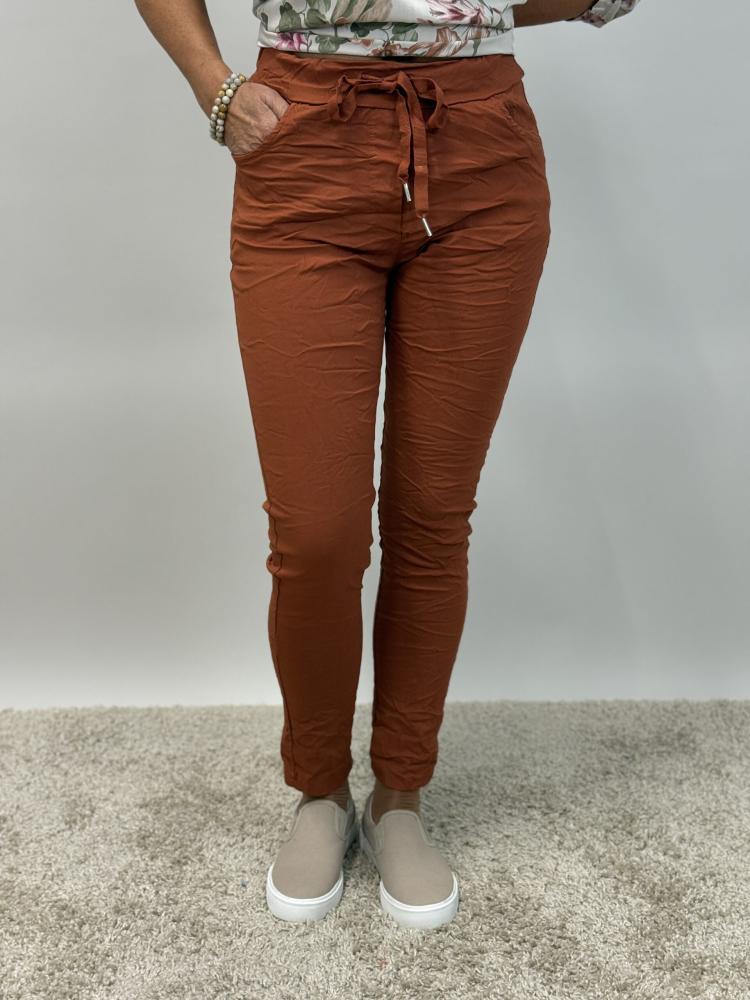 Våra storsäljare! Supersköna rostfärgade stretchiga byxor med resår i midjan, fickor fram och bak.