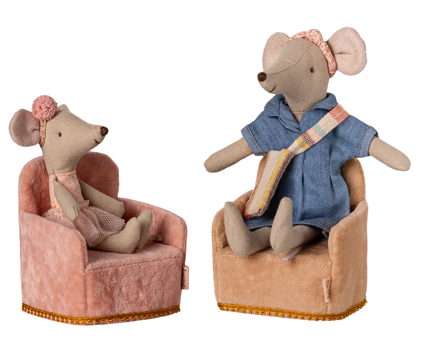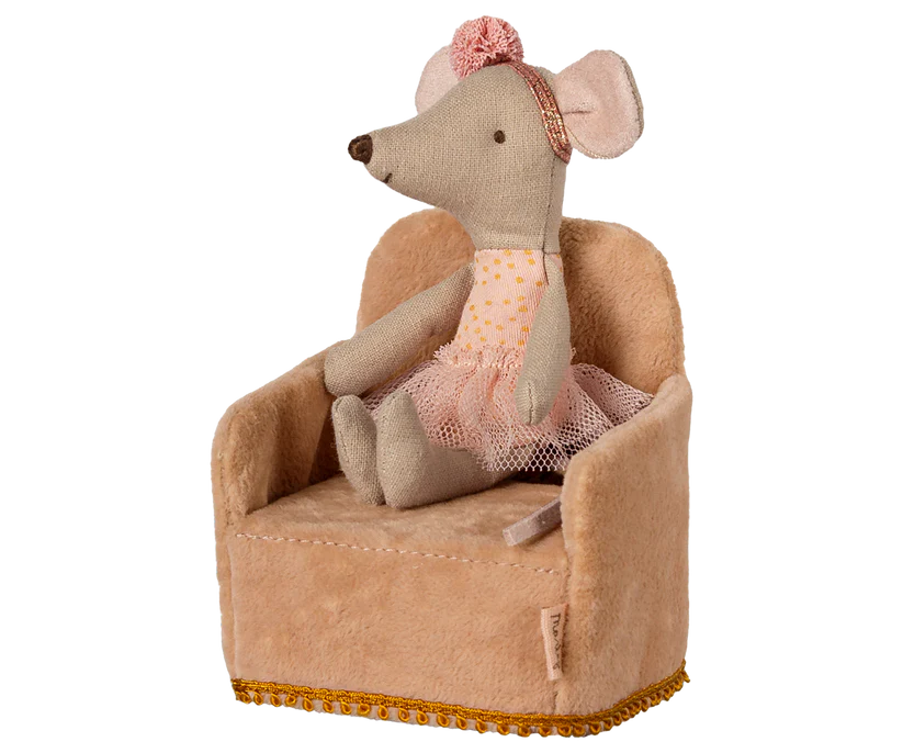 Nyckelord: Maileg fåtölj, miniatyrmöbel, Maileg möbler, dockhusinredning, fantasifull lek, Maileg tillbehör