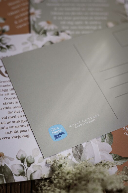Majas kort är framtagna med stor omsorg för att skänka hopp, glädje och tröst i kampen mot barncancer.