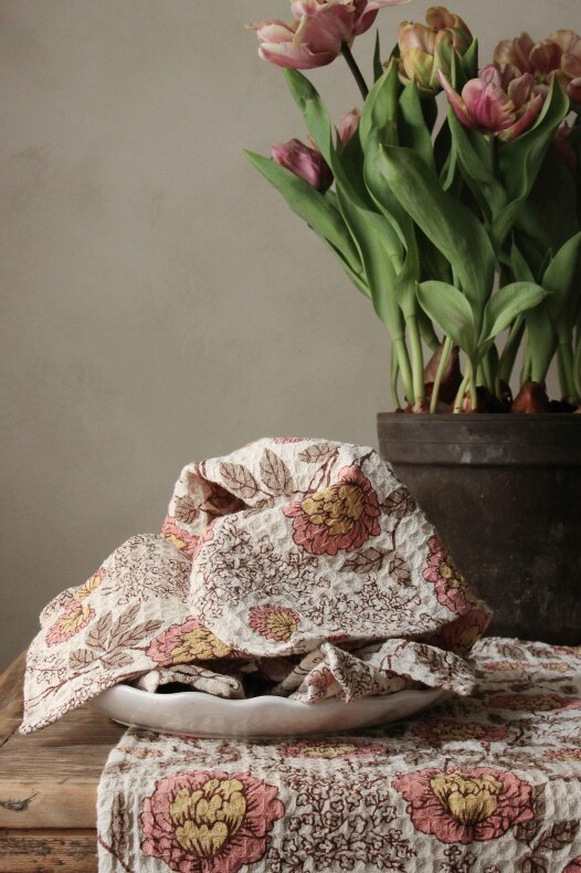Finish Rosa | Gul | Taupe med ett vackert blommigt mönster