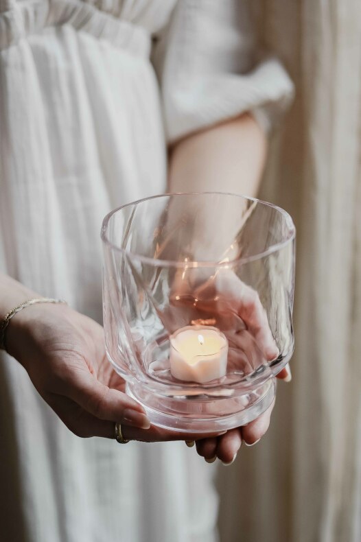 Majas JOY-serie erbjuder en handgjord ljuslykta/vas i vackert klarglas med unika, böljande former. Perfekt som vas för färska blommor eller som ljuslykta för att skapa en mysig atmosfär. Varje exemplar är unikt, med små spår från tillverkningen som vittnar om dess genuina hantverk.